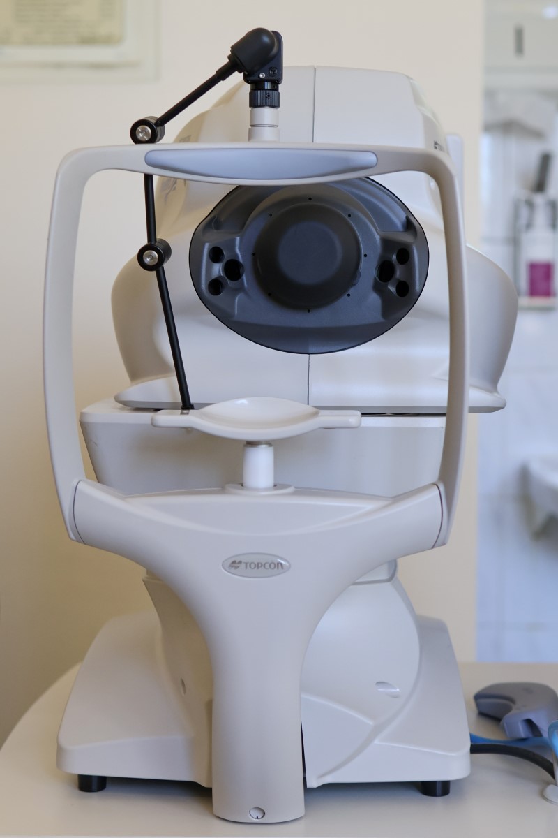 Jest to zaawansowane, bezdotykowe badanie obrazowe, umożliwiające szczegółową ocenę warstw siatkówki oraz tarczy nerwu wzrokowego. OCT jest kluczowe w monitorowaniu zmian jaskrowych, diagnostyce zwyrodnienia plamki żółtej (AMD) i innych chorób siatkówki. Czasem konieczne jest wcześniejsze zastosowanie kropli rozszerzających źrenice.